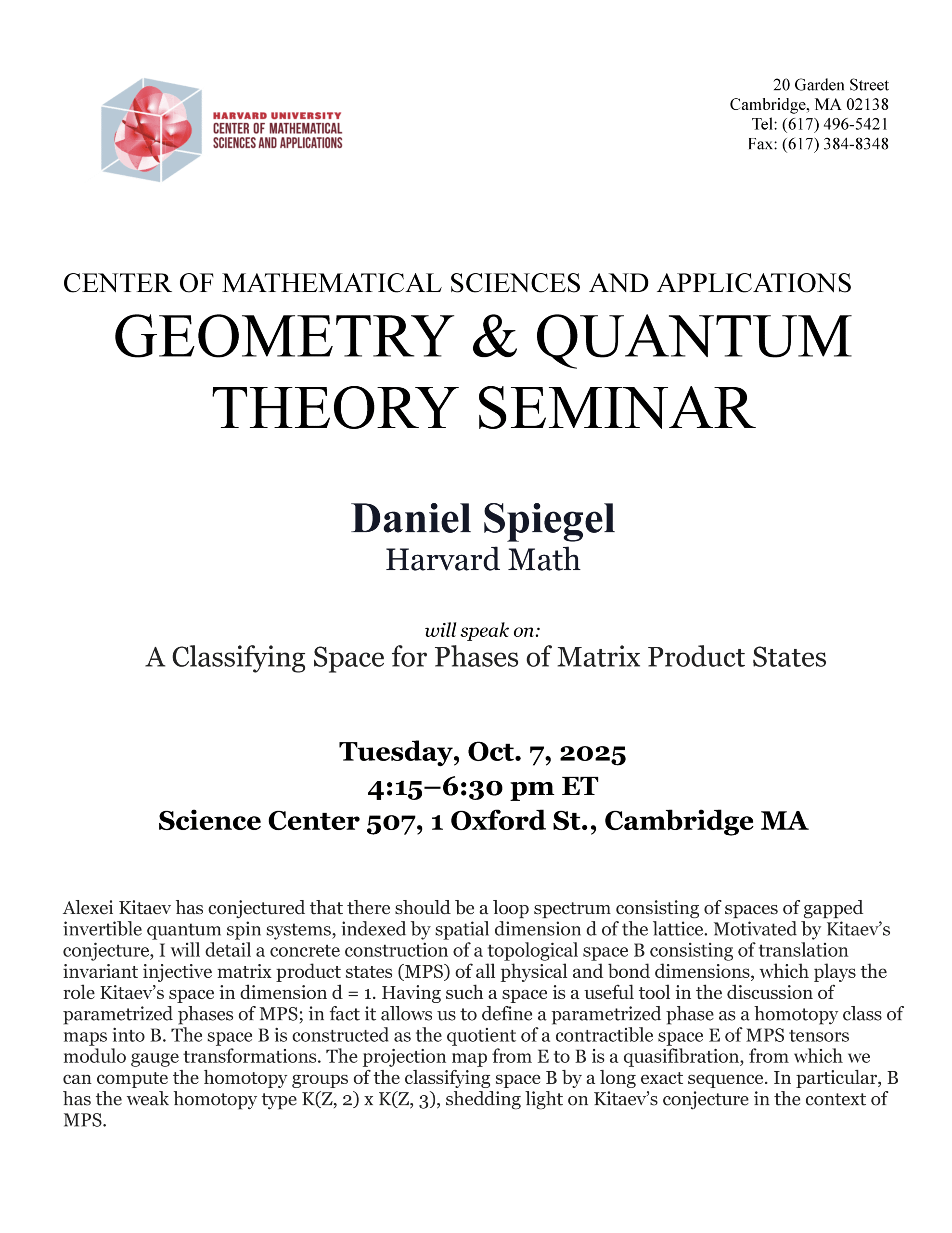 Quantum Field Theory and Physical Mathematics Seminar Speaker: tba |