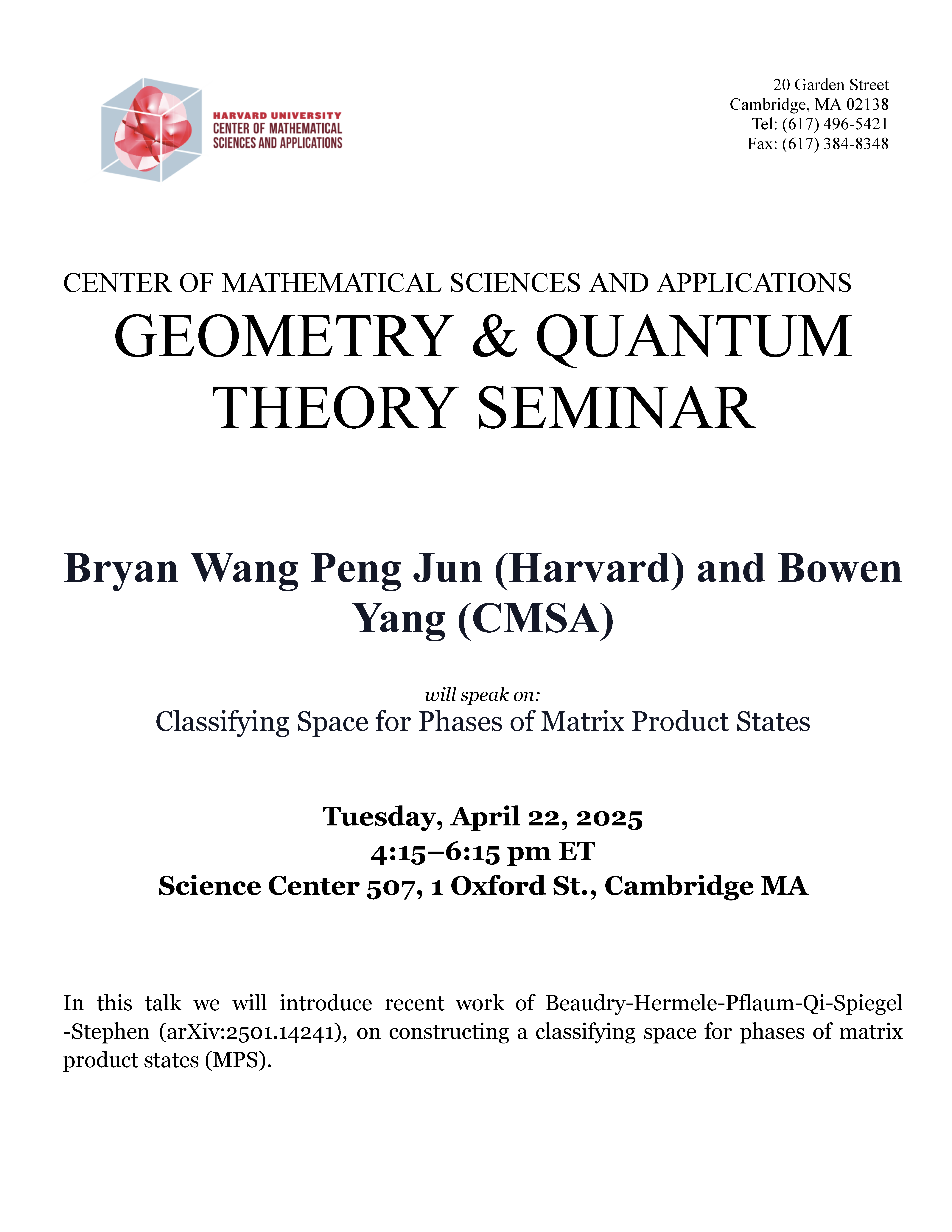The Harvard Center of Mathematical Sciences and Applications (CMSA) is dedicated to the 2-way interaction...