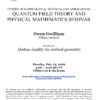 Quantum Field Theory and Physical Mathematics Seminar Speaker: Owen Gwilliam, Umass Amherst Title: Abelian duality via derived geometry Abstract: We discuss how to synthesize differential cohomology and the BV formalism […]