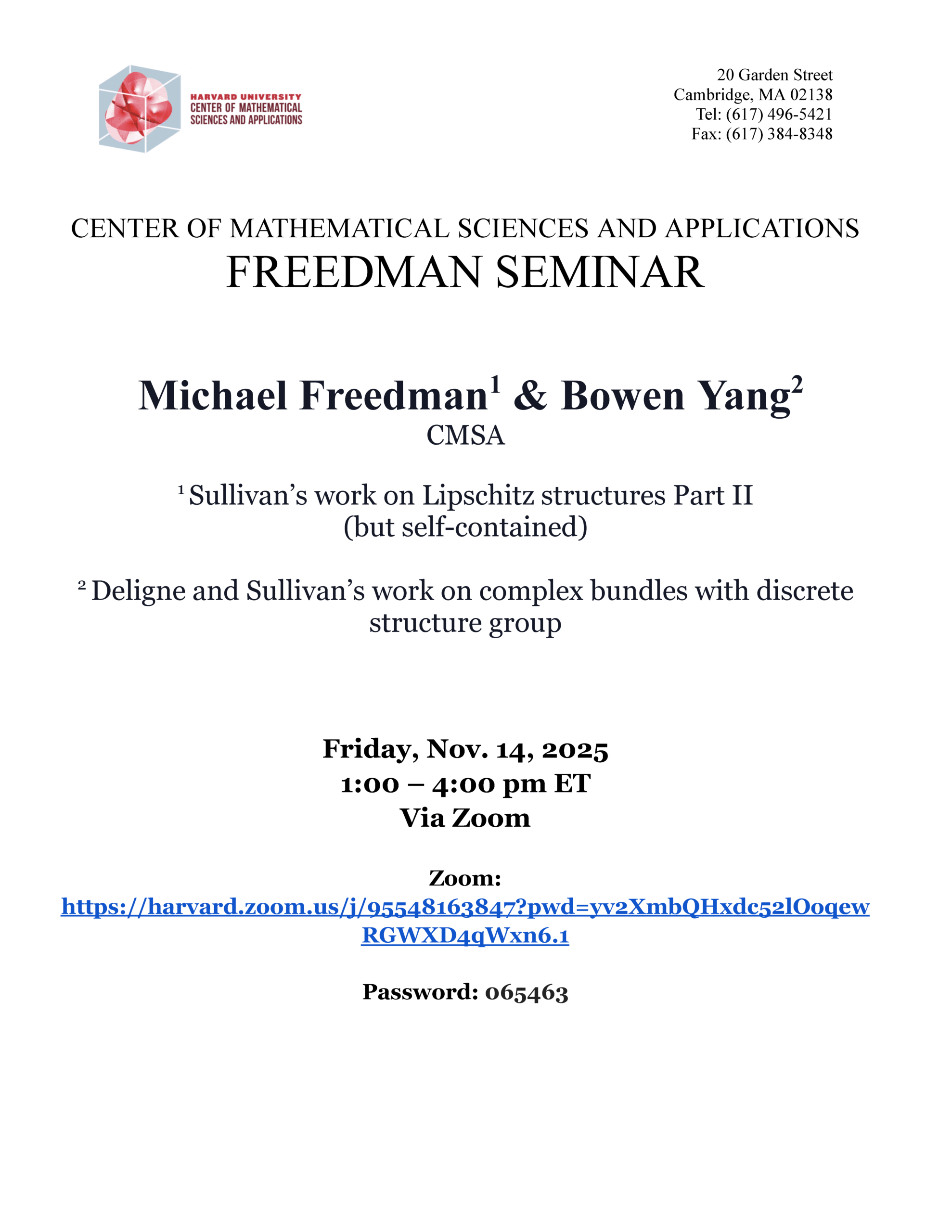 Freedman CMSA Seminar