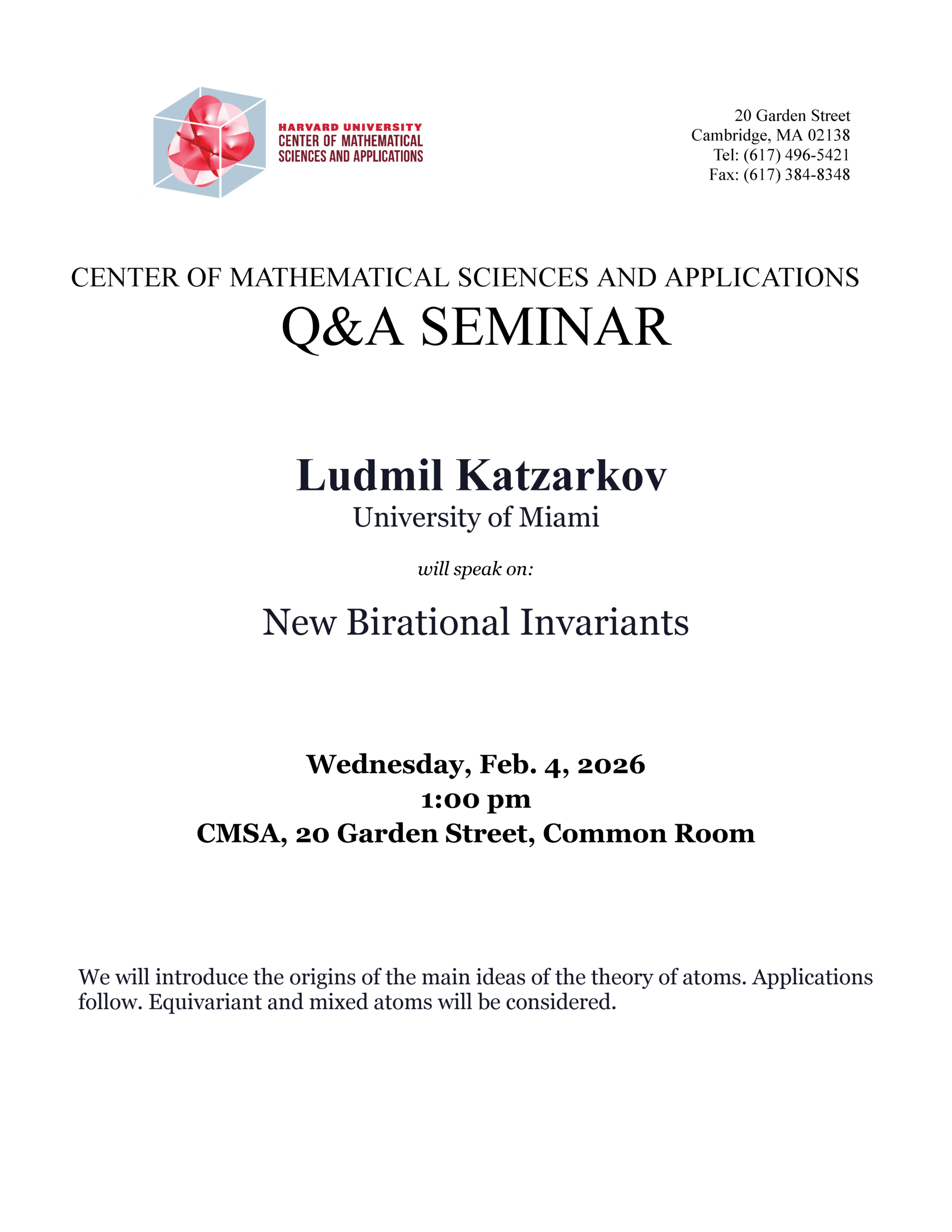Science Center 507 1 Oxford Street, CambridgeGeometry and Quantum Theory Seminar Speaker: Daniel Spiegel, Harvard Title: The Quasi-Adiabatic Theorem and All That Abstract: Yosuke Kubota has recently made progress on understanding Kitaev's conjecture by constructing a […]