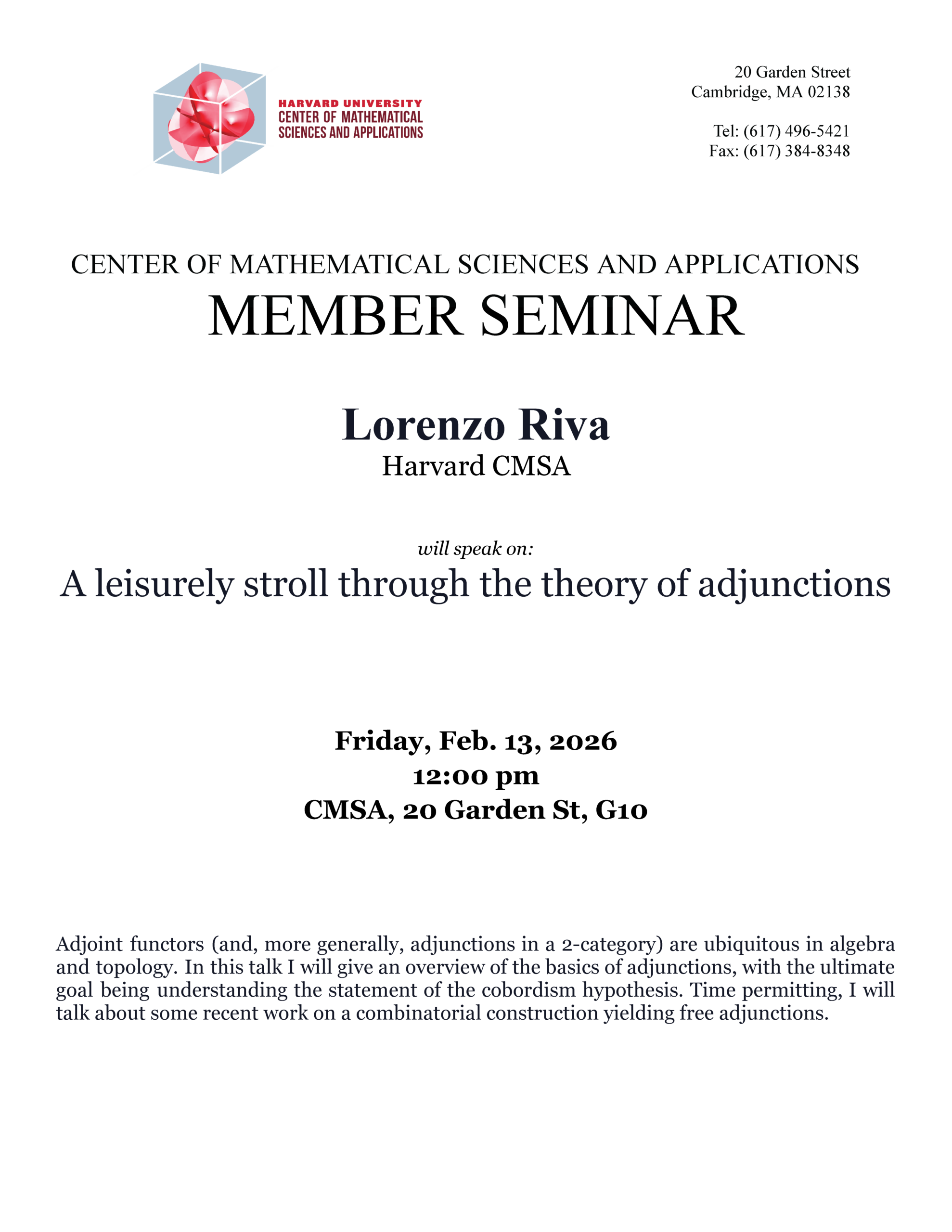 CMSA Room G10 CMSA, 20 Garden Street, Cambridge, MA, United StatesDifferential Geometry and Physics Seminar Speaker: Monica Jinwoo Kang, Texas A&M University Title: Index from a point Abstract: We argue that protected data of 4d N=2 SCFTs admits a purely algebro-geometric characterization. […]