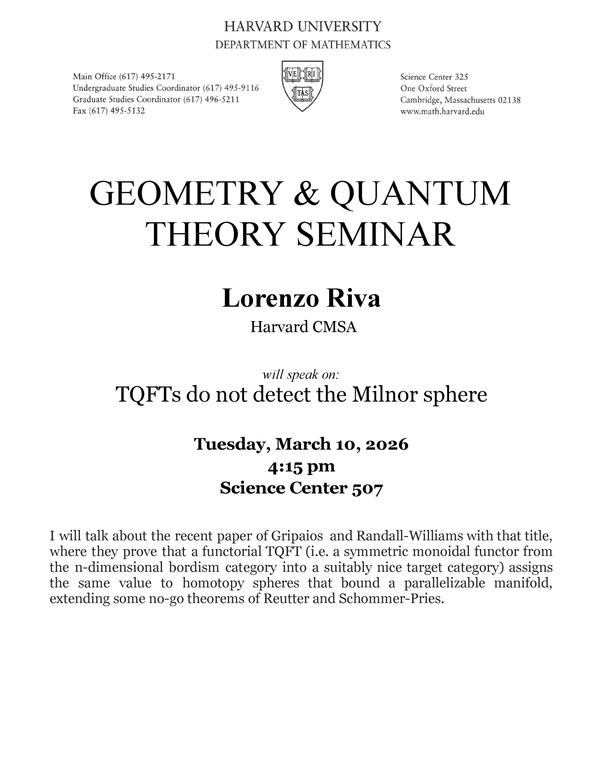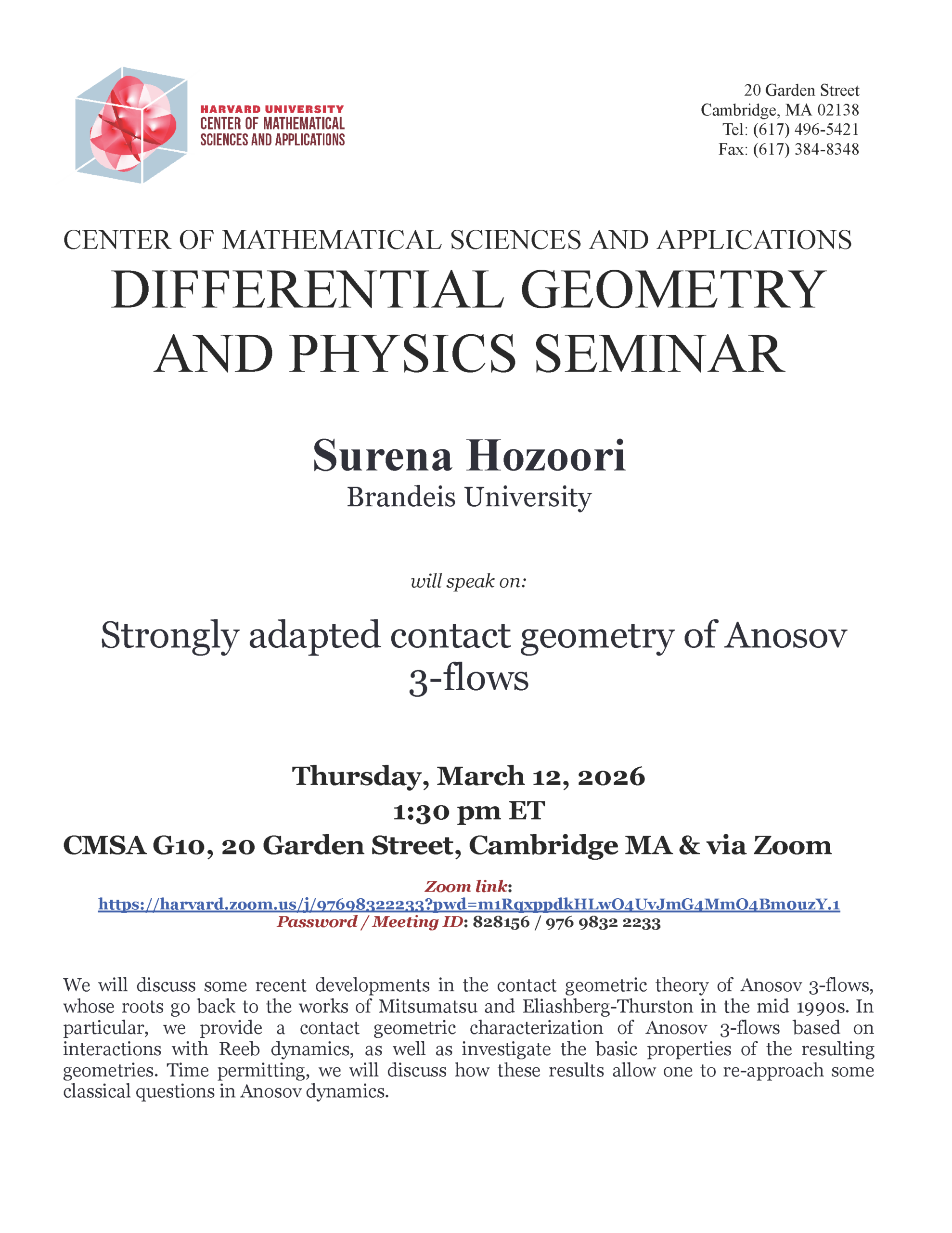 CMSA/Tsinghua Math-Science Literature Lecture Date: March 10, 2026 Time: 8:45 - 10:15 am ET Location: Harvard Science Center Hall A, 1 Oxford Street, Cambridge MA & via Zoom Webinar Speaker: […]