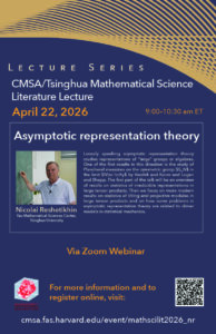 ![]() CMSA/Tsinghua Math-Science Literature Lecture: Nicolai Reshetikhin (Tsinghua): Asymptotic representation theory