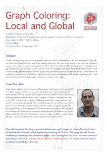 Noga Alon (Tel Aviv University) will be giving a public talk on September 7, 2017,as part of the program on combinatorics and complexity hosted by the CMSA during AY17-18. The... |