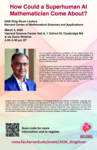 2026 Ding Shum Lecture Date: March 4, 2026 Time: 4:00 pm Location: Harvard Science Center Hall A & via Zoom Webinar Speaker: Sanjeev Arora, Princeton... |