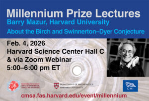 [embed]https://youtu.be/14-9iCoclFE[/embed] Date: February 4, 2026 Time: 5:00–6:00 pm Location: Harvard Science Center Hall C, 1 Oxford St., Cambridge MA Speaker: Barry Mazur, Harvard University Title:... |