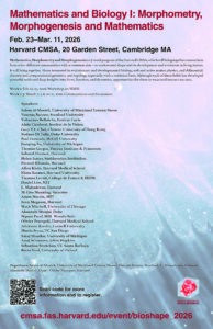 Mathematics and Biology I: Morphometry, Morphogenesis and Mathematics Dates: February 23–March 11, 2026 Location: Harvard CMSA, Room G10, 20 Garden Street, Cambridge MA Mathematics, Morphometry and Morphogenesis... |